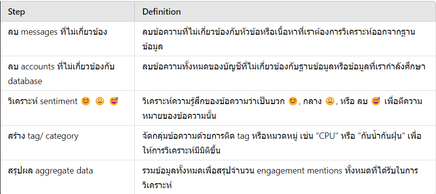 รุปสำหรับ 3 ขั้นตอนในการทำโปรเจ็ค Social Listening