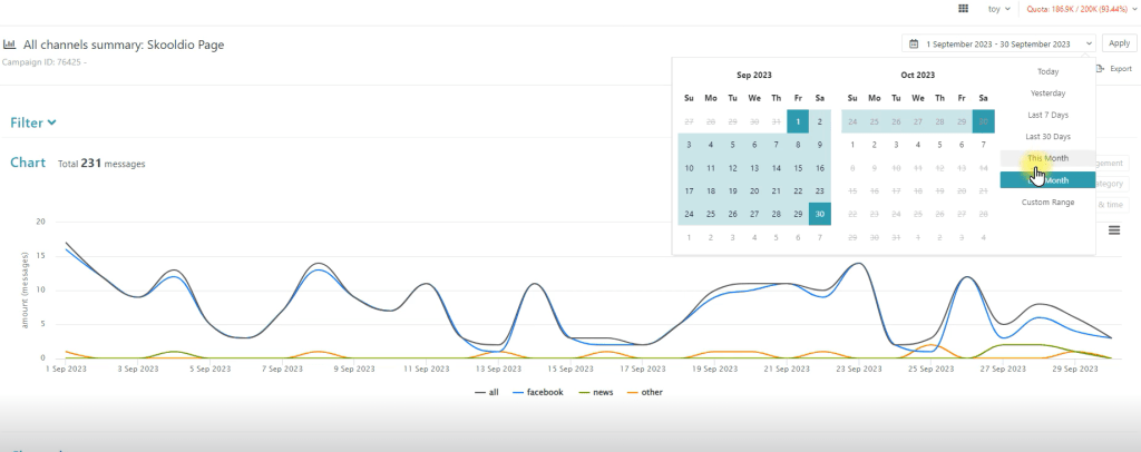 หาช่วงเวลาให้ตรงกับที่เราสนใจก่อน แล้วจะได้เปรียบเทียบข้อมูลทั้ง 3 platform facebook, new and other