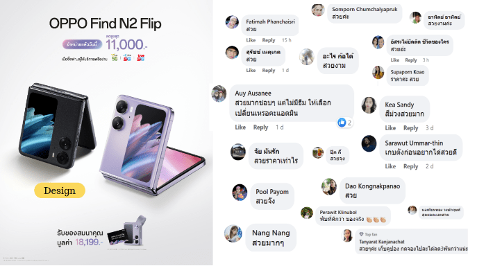 ด้านล่างเป็น Feedback จากลูกค้าในวีดีโอไลฟ์เปิดตัว และโพสต์โปรโมชันบน Facebook Oppo Thailand