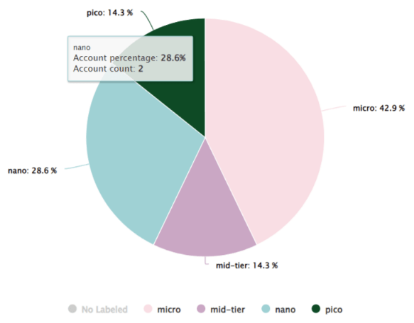 4. Pie Chart ใช้แสดงข้อมูลแบบ categories ที่รวมกันได้ 100% (The Whole) ตัวอย่างนี้เราแบ่งกลุ่ม mentions ตามประเภทของ influencers เป็น pico, micro, nano และ mid-tier ตามจำนวน followers