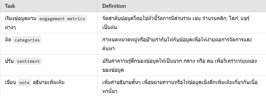 Content in Social Media จัดเป็น unstructure data เพื่อจัดข้อมูลที่ไม่มีโครงสร้าง