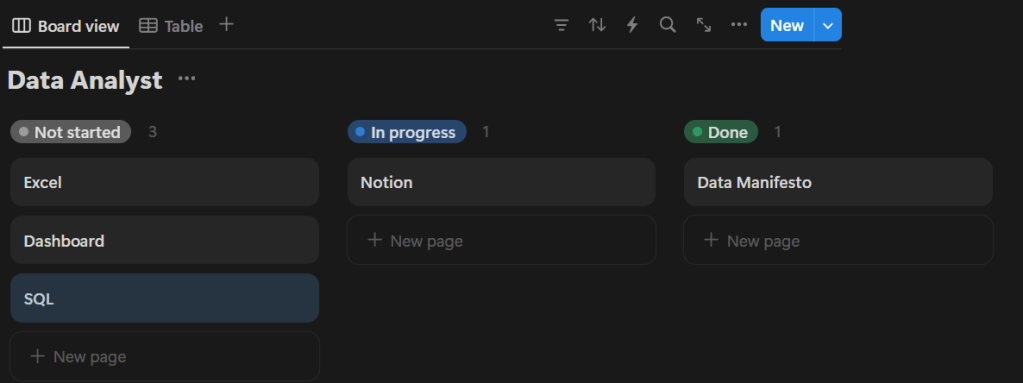 - Excel, SQL, Dashboard ยังไม่เรียน (Not Started)
