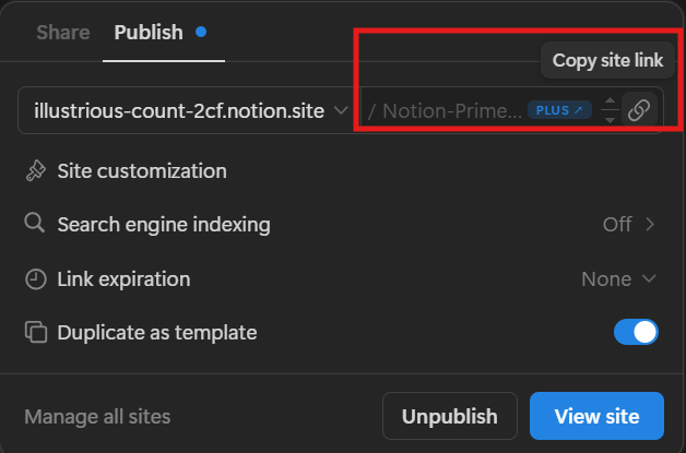 - หากไม่ต้องการคนอื่น duplicate link ของเราไปใช้ได้ให้เลือก disable moving เพื่อไม่โดน Copy เพจได้ใช้ได้เฉพาะ Plus plan ขึ้นไป