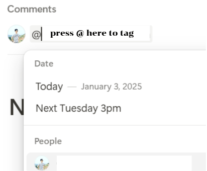 - กดแบบนี้สามารถ tag ชื่อใครที่ได้รับอนุญาตให้อยู่ใน notion ของเราได้