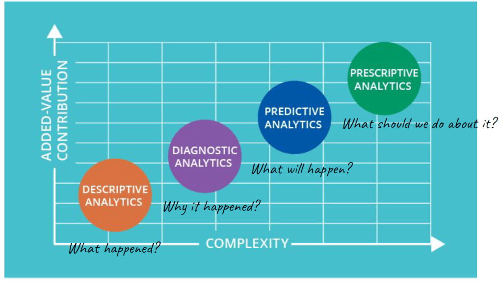 | Descriptive Analytics | What happened? | ตั้งคำถามว่าก่อนหน้านี้เกิดอะไรขึ้น เช่นในเดือนที่แล้วมีลูกค้าประจำมาสมัครสมาชิก |