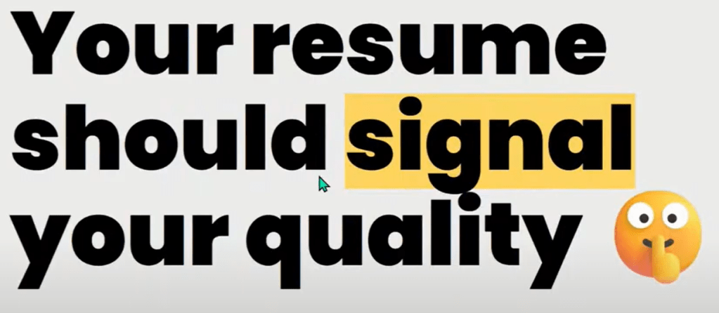 - ทุกอย่างที่ควรใส่ใน resume ควร signaling เรารู้มากกว่า ควรบอกคนที่สัมภาาณ์รู้ว่า สิ่งเหล่านั้นเราสามารถทำได้เหมือนกัน